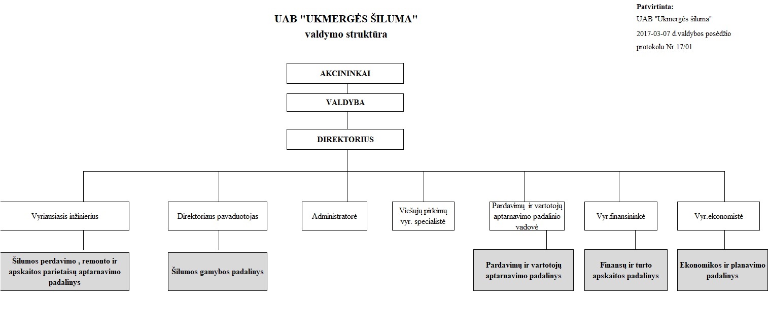Pagal UAB „Ukmergės šiluma“ įstatus aukščiausias valdymo organas yra visuotinis akcininkų susirinkimas.